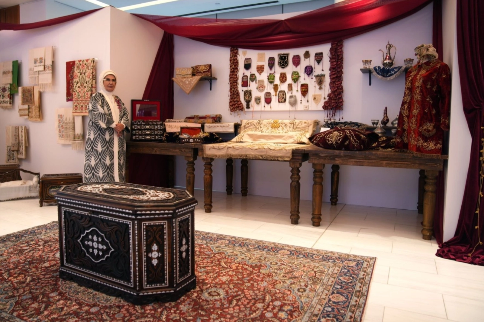 Emine Erdoğan, geleneksel el sanatlarının bir kültürün satır satır okunabileceği yaşayan belgeler mahiyetinde olduğunu belirterek, "Kültür havzası Asya'dan Afrika'ya geniş bir coğrafyayı kapsayan Anadolu, bu anlamda köklü bir hafızaya sahiptir. Tarih boyunca bölgenin insanları, hayatın her yüzünü hünerli elleriyle eşyaya işlemiş, yaşadığı mekânı ince dokunuşlarla güzelleştirmiştir." dedi.