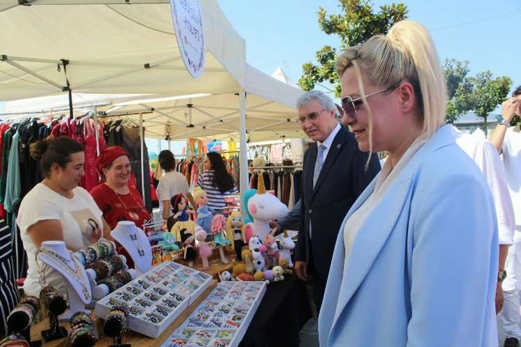 Sakarya Büyükşehir Belediye Başkanı Ekrem Yüce ile SAKİKAD Başkanı Nagihan Aygün Girişimci kadınlar tarafından üretilen el emeği ürünlerin sergilendiği stantları gezerek üretilen ürünleri tek tek inceledikten sonra ürünler hakkında girişimcilerden bilgi aldılar.