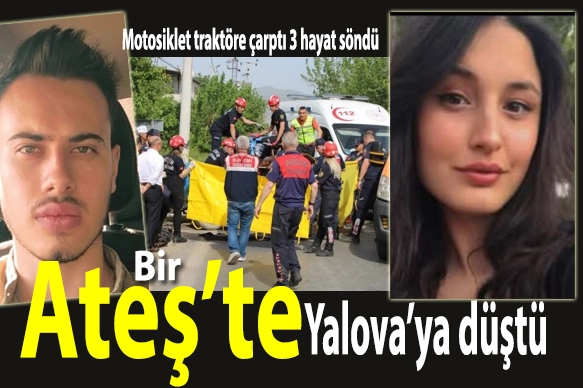 Aydın'ın Koçarlı ilçesinde trafik kazasında ikisi üniversite öğrencisi olmak üzere 3 kişi yaşamını yitirdiği kazada bir ateşte Yalova’ya düştü.Alınan bilgiye göre, Çalırbeyli Mahallesi 595 Sokak’tan gelen ve Çakmar Mahallesi istikametine dönmeye çalışan 72 yaşındaki Mesut Küçük idaresindeki 09 KH 160 plakalı traktör ile Çakmar yönünden gelen ve 77 ADP 618 plakalı motosikleti süren Selim Ateş idaresindeki motosiklet çarpıştı.