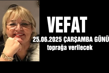 Hakkın rahmetine kavuşan merhume Figen Abbasoğlu’nun cenazesi yarın(25.06.2025 Çarşamba günü) Yalova Merkez camiinde kılınacak olan öğle namazından sonra Yalova eski şehir Mezarlığında toprağa verilecek.Bolge.com.tr yazı ailesi olarak merhumeye Allahtan rahmet Kederli ailesine başsağlığı dileriz