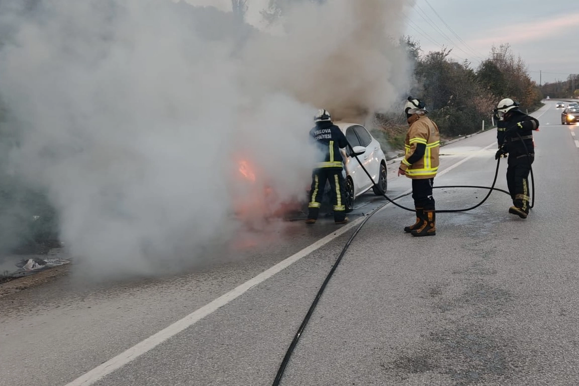 Bursa Yolu Sepetçioğlu mevkiinde meydana gelen araç yangını, Yalova İtfaiye Müdürlüğü ekiplerinin zamanında ve kontrollü müdahalesiyle kısa sürede söndürüldü.