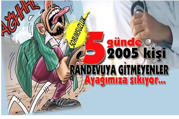 Randevuya gidemeyecek durumda olan kişilerin en az 2 gün önceden randevularını iptal etmesi gerekiyor.Randevuyu alıp ta sıra dolduran bu 2005 kişi yüzünden çok sayıda hasta muayene olamadı.