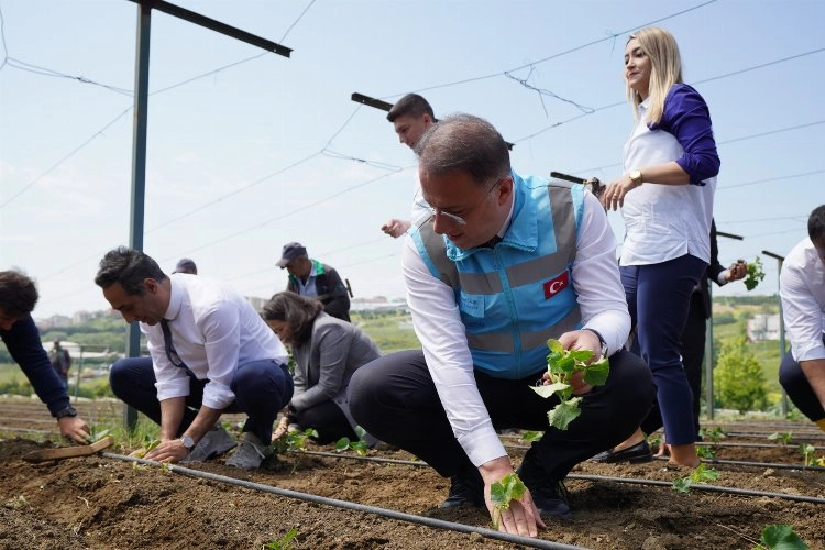 İSTANBUL (İGFA) - Beylikdüzü Belediyesi tarafından üreten ve kendine yetebilen bir kent yaratma hedefiyle hayata geçirilen Yaşam Bahçesi’nde yaz mevsiminin ilk fideleri toprakla buluştu. Yaşam Vadisi 3.Etaba teğet 20 dönümlük bir alanda yer alan bahçede mevsim sebze ve meyvelerinden olan domates, patlıcan, salatalık, kabak, karpuz, kavun ve biber çeşitlerinin de olduğu toplam 10 çeşit ürünün ekimi gerçekleşti. Ekimde emekçilerle birlikte fideleri toprakla buluşturan Beylikdüzü Belediye Başkanı Mehmet Murat Çalık, bir fidenin toprakla buluşmasının çok kıymetli olduğunu vurgulayarak, “Beylikdüzü’nün toprakları verimli, ne ekerseniz onu biçersiniz. Biz bugüne kadar hep sevginin tohumlarını ektik ve bizim ektiğimiz sevgi tohumları da bahçemize fayda sağlıyor. Burada herkes mutlu, herkes bir fideyi toprakla buluşturmanın heyecanını yaşıyor” diye konuştu.