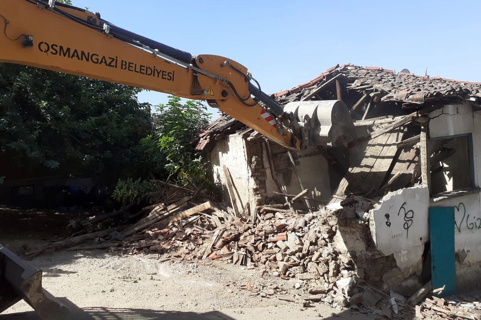 BURSA (İGFA) - Osmangazi Belediyesi, vatandaşların emniyeti ve sağlığı açısından risk oluşturan metruk binaların yıkımını sürdürüyor.