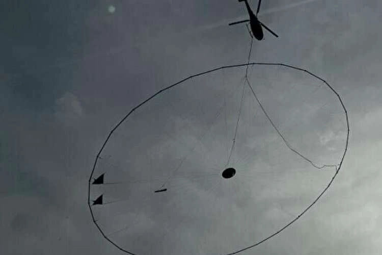 Orhaneli gündüz saatlerinde ilçe semalarında altında oval metal olan helikopteri merak konusu olmuştu.