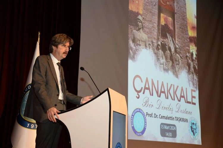 Çanakkale Bir Diriliş Destanı konferansında konuşmacı olarak yer alan Prof. Dr. Cemalettin Taşkıran da; “Çanakkale, Türk tarihinin şanlı bir sayfasıdır. Bunu bir kere en baştan söylemek gerekiyor. Gerçek bir ölüm kalım savaşıdır. Karşı taraf bizim kazanmamıza şans vermiyordu. Ancak Türk insanının kanaatkarlığı, vatanseverliği ve imanı Çanakkale zaferini bize kazandırmıştır. Onun için diyorum ki bu zafer, Türk tarihinin en şanlı olaylarından birisidir. Zaferlerimiz kadar mağlubiyetlerimizi de unutmamak gerekiyor. Buralardan ders çıkarmak ve ülkemizi geliştirmeyi sürdürmeliyiz” şeklinde konuştu.