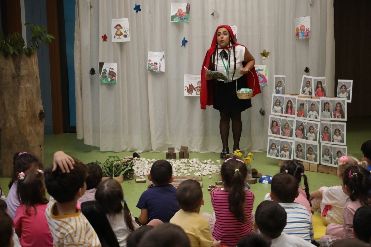 Minikler öğretmenleri tarafından anlatılan dünyaca ünlü masalları dikkatle dinlerken Çınar Çocuk Evi’nden faydalanan kız öğrenciler program sonunda ‘Dünya Kız Çocukları Günü’ hatırası olarak öğretmenleriyle toplu fotoğraf çektirdi.