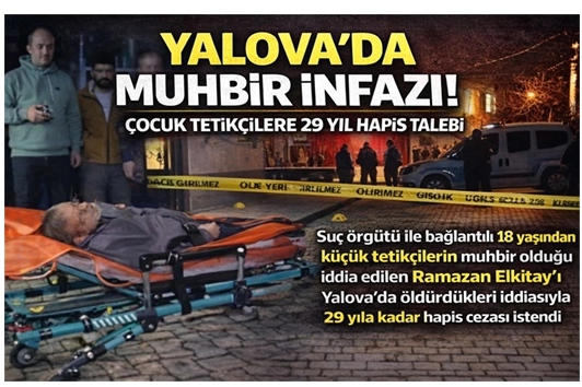 Yalova’daki simitçi Cinayet Dosyasında İddianame Tamamlandı: Çocuk Tetikçilere 29 Yıla Kadar Hapis İstendi.Yalova Cumhuriyet Başsavcılığı tarafından yürütülen soruşturma kapsamında, 7 Aralık 2024’te Yalova’da silahlı saldırı sonucu hayatını kaybeden Ramazan Elkıtay cinayetine ilişkin iddianame tamamlandı.