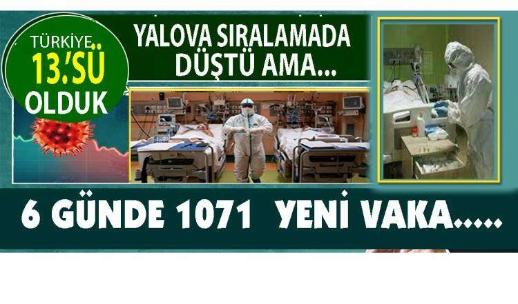 Sayısı az bir şekilde artarken diğer illerde vaka sayısı artınca Yalova 9.sıradan 13 sıraya düştü. Her ne kadar sıra kaybetsek te Yalova’da vaka sayısı arttı.