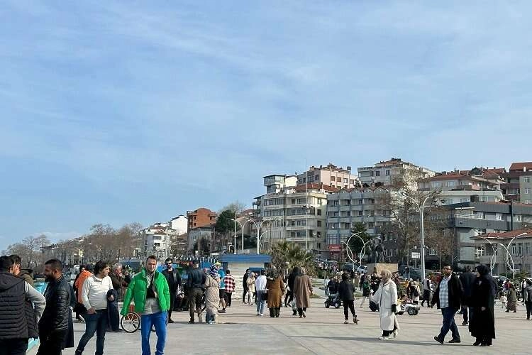 Hafta sonu tatilinde ilçede vakit geçirmek isteyenler, sahil şeridinde, yürüyüş yolları, çay bahçeleri ve kafelerde vakit geçirdi.