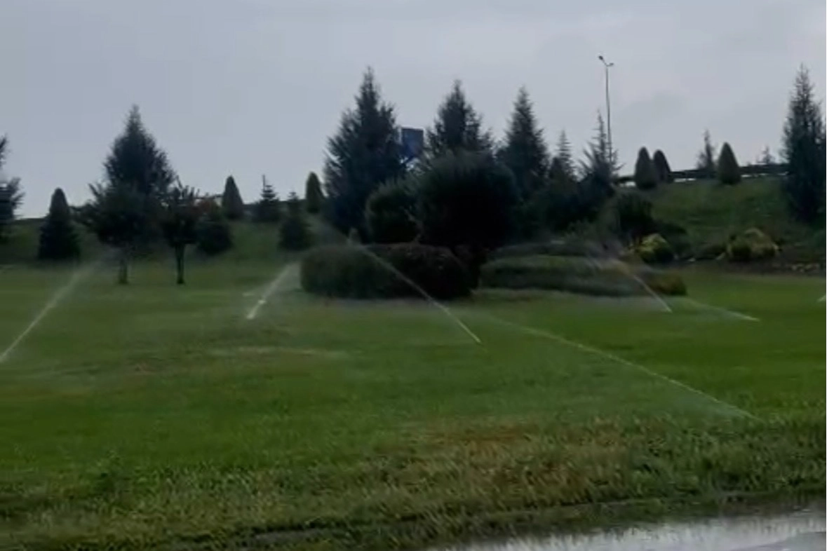 Sefer DEMİR / DÜZCE (İGFA) - Dün akşamdan buyana yağışlı olan Düzce'de sulama fıskiyelerinin saatlerce açık ve çimleri sulayan görüntüleri vatandaşlar arasında trajikomik bir mizah konusu oldu.