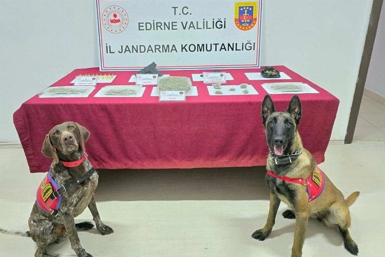 Yapılan aramalarda; 500 gram skunk uyuşturucu madde, 1 adet uyuşturucu madde öğütme aparatı, 1 adet tabanca ve, 38 adet tabanca fişeği ele geçirildi.