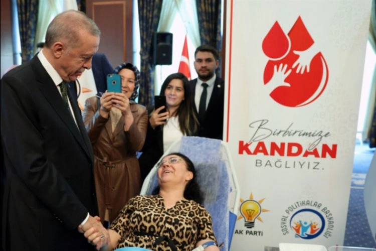 ANKARA (İGFA) - Cumhurbaşkanı Erdoğan, AK Parti’de kan bağışı kampanyasına katılanları ziyaret etti