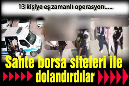 İddiaya göre, Yalova Emniyeti Siber Suçlarla Mücadele Şube Müdürlüğü ekipleri, sosyal medya üzerinden iletişime geçtikleri vatandaşların cep telefonlarına sahte borsa uygulamaları yükleten ve bu uygulamalar üzerinden yüksek kazançlı yatırım vaadiyle dolandıran 13 şüpheliye yönelik Yalova merkezli olarak İstanbul, İzmir, Sakarya, Antalya, Konya, Kahramanmaraş, Osmaniye ve Karaman'da eş zamanlı operasyon düzenledi.