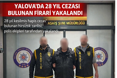 24 Mart 2026 tarihinde, Yalova İlamat ve İnfaz Bürosu tarafından “Hırsızlık”, Sakarya Asliye Ceza Mahkemesi tarafından ise “Bina İçinde Muhafaza Altına Alınmış Olan Eşya Hakkında Hırsızlık” ve “Konut Dokunulmazlığını İhlal Etme” suçlarından aranan, toplam 28 yıl 2 ay kesinleşmiş hapis cezası bulunan cezaevi firarisi bir şahıs yakalandı.