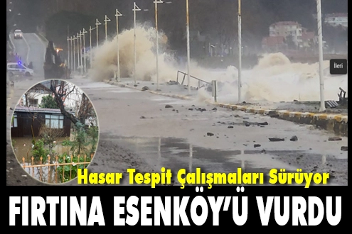 Marmara Bölgesi’nde etkili olan şiddetli fırtına, Yalova’nın Çınarcık ilçesine bağlı Esenköy beldesinde deniz taşkınına yol açtı.Olumsuz hava koşulları nedeniyle kabaran Marmara Denizi, kıyı şeridini aşarak balıkçı barınakları ve sahil hattındaki bazı yapılarda hasara neden oldu.