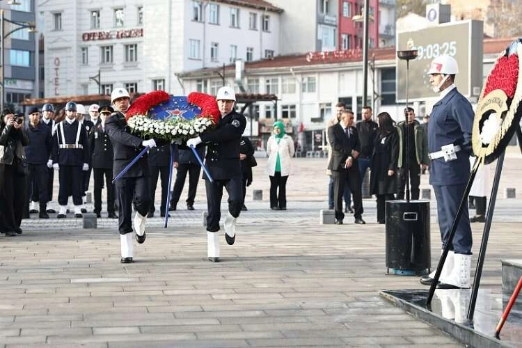 KÜTAHYA (İGFA) - Kütahya'daki tören Vali Musa Işın, Hava Er Eğitim Tugay ve Garnizon Komutanı Hava Tuğgeneral Mustafa Baş ile Belediye Başkan Prof. Dr. Alim Işık'ın Atatürk Anıtı’na çelenk sunmasıyla başladı.