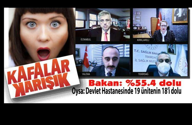 Sağlık Bakanı Koca ,Yalova’da korona vakaları için ayrılan yoğun bakım ünitelerinin doluluk oranını %55.4 olarak açıklarken, Yalova Devlet Hastanesinde korona için ayrılan 19 ünitenin 18’nin,ve 3 özel hastanelerinin de yoğun bakım odalarının dolu olması kafaları karıştırdı.