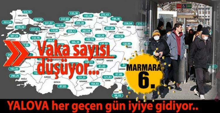 Geçen hafta Yalova 100 binde görülen vaka sayısı 385,91 iken bu haftaki yeni vaka sayısı ise, Yalova:237.11 oldu.
