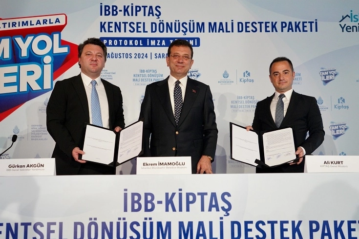 İSTANBUL (İGFA) - İstanbul Büyükşehir Belediyesi ile İstanbul Konut İmar Plan Sanayi ve Ticaret A.Ş. (KİPTAŞ) arasında, riskli yapılarını yenilemek isteyen düşük gelirli hak sahiplerine sunulacak kentsel dönüşüm mali destek paketi protokolü imzalandı.