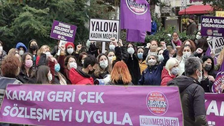 Yalova Cevdet Aydın parkında toplanan ve kendilerine Kadın Meclisi adını veren bazı kadınlar Cumhurbaşkanı Erdoğan’ ın kararından vazgeçmesini istedi ve İstanbul Sözleşmesinin devam etmesini istediler.