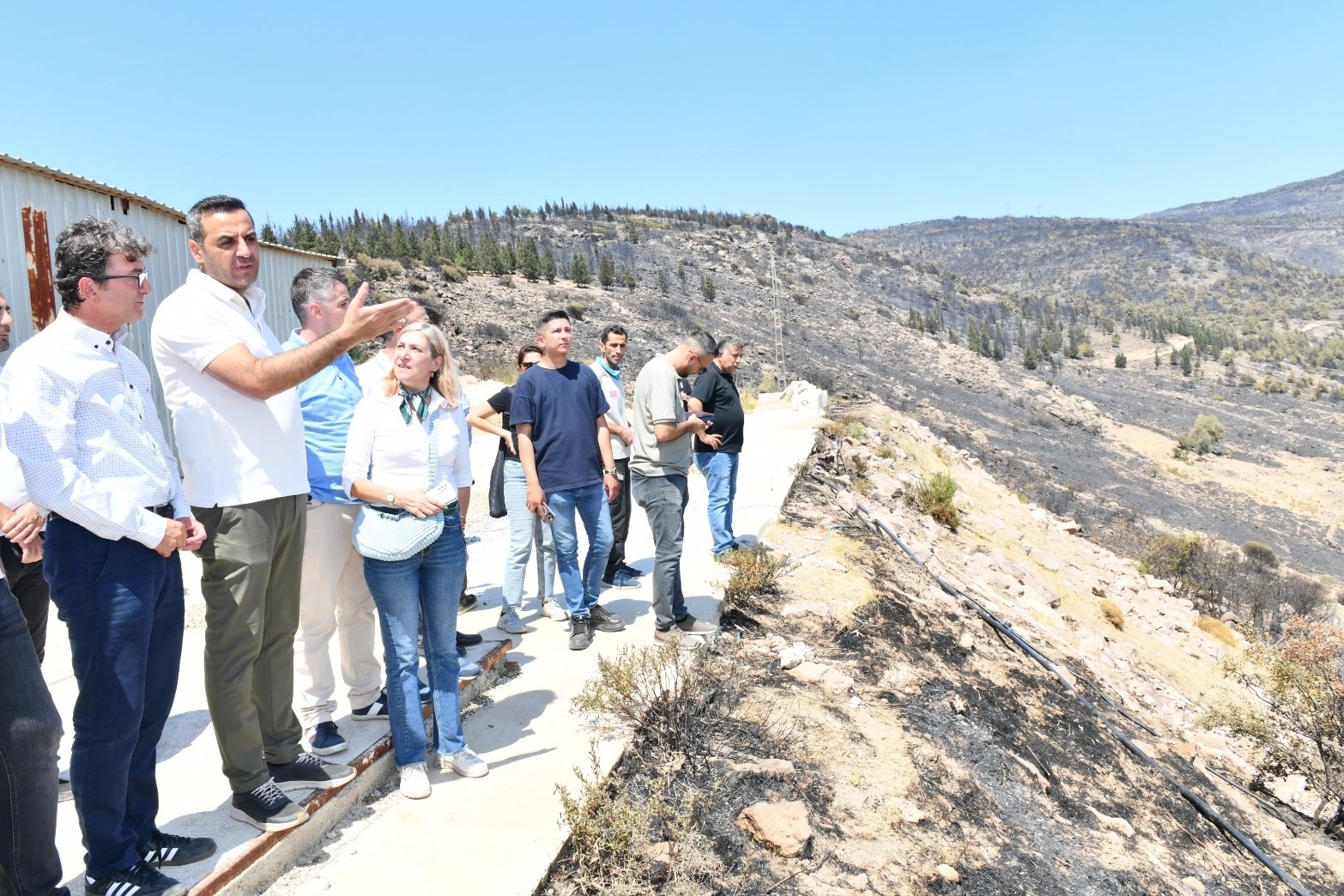 İzmir'de Çiğli Belediye Başkanı Onur Emrah Yıldız, Karşıyaka’nın Yamanlar Bölgesi’nde başlayan ve Çiğli’yi de etkisi altına alan yangın sonrasında yangından etkilenen bölgelerde incelemelerde bulundu