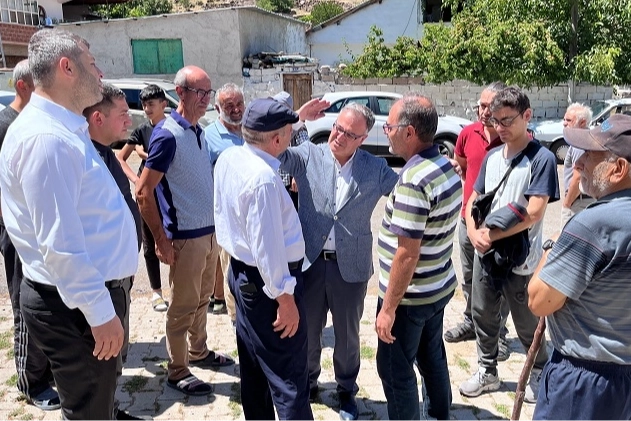 KAYSERİ (İGFA) - Kayseri Hacılar'da ilçe sakinlerinin sorunlarını yerinde dinleyip anında çözüm için çalışma yapan Başkan Bilal Özdoğan'ın yeni durağı Sakarçiftliği Mahallesi oldu.Burada namaz sonrası vatandaşlarla bir süre sohbet eden Başkan Özdoğan, daha sonra Sakarçiftliği Mahalle Muhtarı Mustafa Kemal Muslu'yu yanına alarak incelemelerde bulundu.