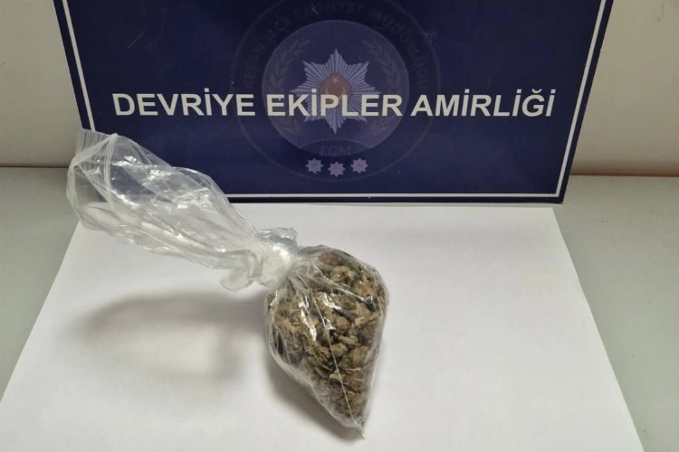 Erdoğan DEMİR / EDİRNE (İGFA) - Ekipler, 18 Mayıs 2024 günü saat 01:00 sıralarında sorumluluk bölgesi olan Yeni Mescit Mahallesi Davul Sokak'ta park halinde bulunan bir aracı kontrol etti. Araç sürücüsü T.D.'nin yanında bulunan yolcu koltuğunda 26,29 gram ağırlığında marihuana (esrar) uyuşturucu maddesi ele geçirildi.