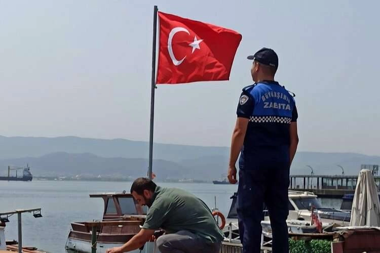 Bu kapsamda devriye atan ekipler Salim Dervişoğlu Caddesi üzerinde bulunan eski balık hali bölgesindeki yapıda dalgalanan Türk Bayrağının rüzgar ve güneşin etkisiyle eskidiğini fark etti. Zabıta Şube Müdürlüğü ekipleri, al bayrağımızın yenisini tedarik ederek vatandaşlara ulaştırdı. Rengi solan eski bayrak yenisiyle değiştirildi.