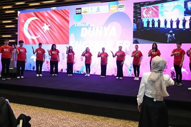 KONYA (İGFA) - Selçuklu Kongre Merkezi’ndeki düzenlenen programda Konya Büyükşehir Belediyesi Özel Gençler Mehter Takımı girişte davetlileri alkış alan performansıyla karşıladı. Adnan Akgül Özel Eğitim Meslek Lisesi öğrencilerinin işaret dili çevirisi eşliğinde İstiklal Marşımızın okunmasıyla ile başlayan program, otizimli Genç KOMEK öğrencisi Taha Apak’ın Kur’an-ı Kerim tilâveti ile devam etti.