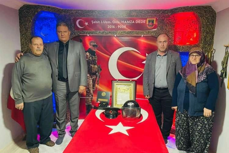 MANİSA (İGFA) - Manisa Büyükşehir Belediyesi Mezarlıklar Dairesi Başkanı Aydoğan İra, Saruhanlı Muhtarlık İşleri Şube Müdürü Serdar Özgedik ile birlikte, Sivas’ta göreve giderken 26 Haziran 2017 tarihinde meydana gelen trafik kazasında şehit olan Jandarma Uzman Onbaşı Hamza Dede’nin Saruhanlı Şehitliğindeki kabrine ve baba evine ziyaret gerçekleştirdi.
