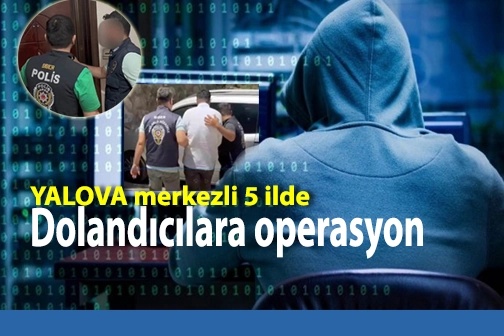 Yalova merkezli 5 ilde siber dolandırıcılık operasyonunda 6 kişi tutuklandı. Sosyal medyada sahte kazanç vaatleriyle dolandırıcılık yapan şüphelilerden biri hala aranıyor. Eşzamanlı operasyon Yalova, Ankara, Sakarya, Mersin ve Afyon'da yapıldı.