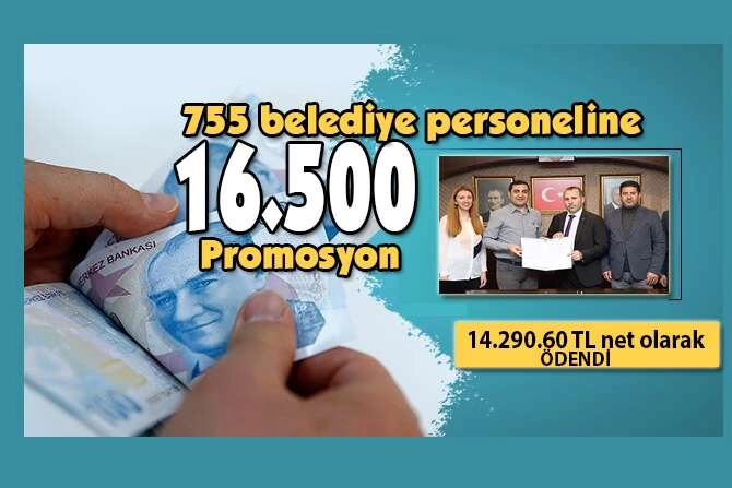 Yalova Belediyesi şirketlerinden Personel A.Ş. bünyesinde görev yapan 755 çalışanın banka promosyonu olarak tek seferde 14.290.60 TL net olarak ödendi. Bankadan verilen 16.500 TL Promosyonda vade gelmeden banka değişikliği nedeni ile eski bankaya vadeden kalan meblağ ödendikten sonra net olarak hesaba 14.290.60 TL yatırıldı.