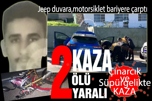Yalova da meydana gelen 2 trafik kazasında 2 kişi hayatını kaybetti 2 kişide yaralandı.Çınarcık ve Yalova'nın Çınarcık ilçesinde sürücüsü direksiyon başında kalp krizi geçiren cip duvara çarptı.