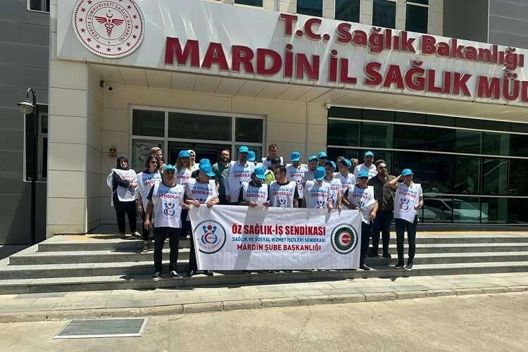 Öz Sağlık-İş Sendikası Mardin İl Başkan Yardımcısı İrfan Baykal yaptığı açıklamada "Alnımızın teri vicdanlarınızda kurudu. Geriye dönük alacaklarımızın daha fazla geciktirilmeden ve tek kalemde ödenmesini istiyoruz. Sizlerin de yakından bildiği üzere Sağlık Bakanlığı bünyesinde çalışan sağlık işçilerinin yetkili sendikası ÖZ SAĞLIK-İŞ olarak 190 bin işçimiz işveren sendikası TÜHİS ile imzaladığımız Toplu İş Sözleşmesi'nin üzerinden 46 gün geçti.