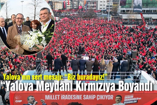 Cumhuriyet Halk Partisi Genel Başkanı Özgür Özel, Yalova’da düzenlenen Millet İradesine Sahip Çıkıyor Mitinginde vatandaşlara hitap etti.Cumhuriyet Meydanında gerçekleşen mitingde, CHP Yalova eski Milletvekili Muharrem İnce, Yalova belediye Başkanı Mehmet Gürel ve CHP il Başkanı Erdem Doğancı birer konuşma yaptılar. CHP Yalova Milletvekili Tahsin Becan’ında otobüsün üstüne çıkarak Yalova halkını selamladığı mitinge, CHP'li Yalova ilçe ve belde belediye başkanları da hazır bulundu.