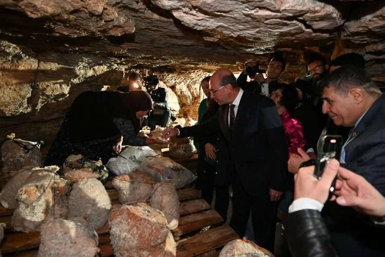 Selçuklu Belediye Başkanı Ahmet Pekyatırmacı beraberindeki protokol üyeleri ve basın mensupları ile birlikte yağı alınmış sütlerden üretilerek tuluklara basılan ve özel mağaralara bırakılarak doğal ortamında olgunlaştırılan ve lezzetlenen tulum peynirlerinin hasadına yerinde tanıklık etti.