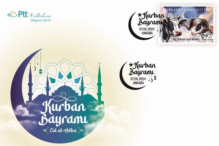 İSTANBUL (İGFA) - PTT AŞ, 7 Haziran 2024 tarihinde "Kurban Bayramı" konulu 29+1 TL (36 x 52 mm boyutunda) bedelli anma pulu ile söz konusu pula ait 59 TL bedelli ilkgün zarfını abone sayısı kadar PTT iş yerlerinde ve PTT AŞ’ye ait www.filateli.gov.trweb adresinde satışa sundu.