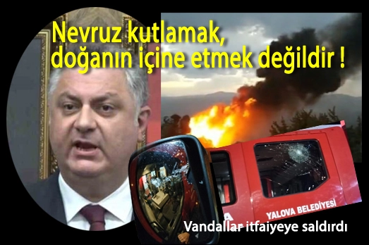 Baharın müjdecisi Nevruz Bayramı, nedeni ile lastik yakıldığı ihbarını alan Yalova İtfaiyesi, Seyrantepe Mahallesinde kimliği henüz tespit edilemeyen maskeli kişilerin taşlı saldırısına uğradı. İtfaiye araçlarının camları kırıldı, kaportaları atılan taşlar nedeni ile hasar gördü.