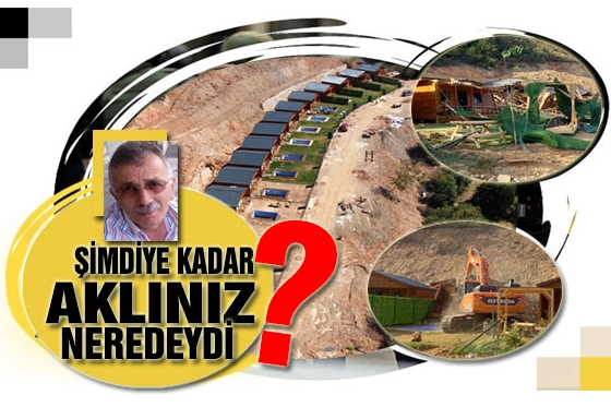 Aralarında aylar önce ormanlık içinde zemin düzlemesi yapılan ve çok sayıda bungalov evlerin bulunduğu ahşap yapılarda var.