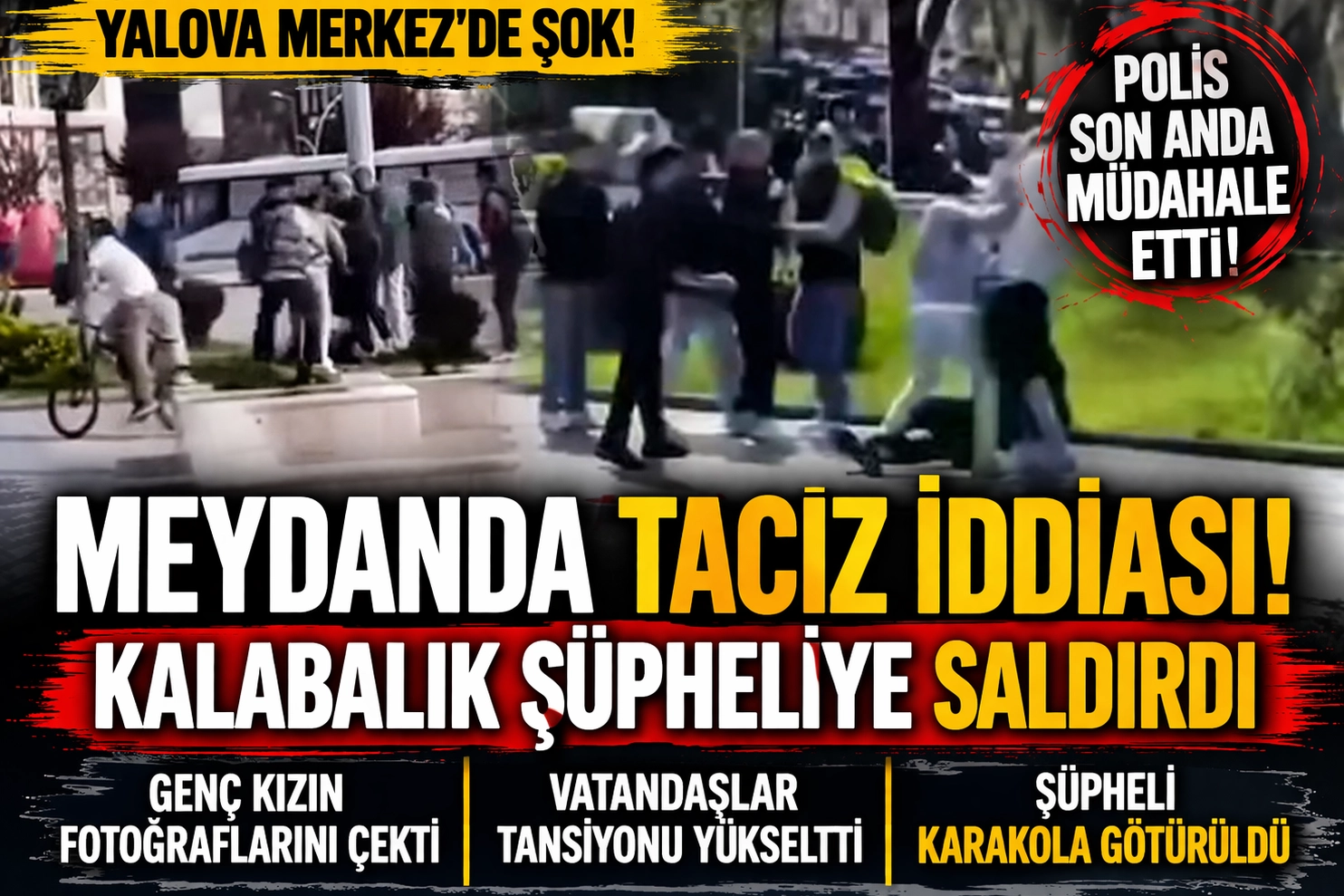 Yalova Merkez’de bir genç kızın fotoğraflarını izinsiz çektiği iddia edilen bir şahıs, vatandaşların tepkisiyle karşılaştı. Kısa sürede büyüyen olayda kalabalık, şüpheliye müdahalede bulundu.