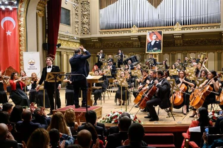 Prof. Sevil Ulucan Weinstein ve Bas Bariton Burak Bilgili’nin de misafir sanatçı olarak katıldığı konserde, Batı ve Doğu müziğine ait eserlerin yanı sıra türkü ve marşlarla Cumhuriyet Bayramı coşkusu doruğa çıktı.