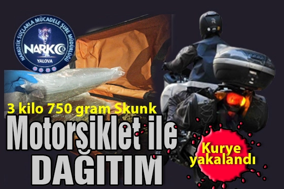 Yalova'da polis uyuşturucu satıcısı A.E.'yi operasyonla yakaladı. A.E.'nin motosikletinde 3,750 kg Skunk ve nakit para ele geçirildi. Adli mercilere sevk edilerek uyuşturucu ticaretinden tutuklandı.
