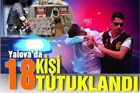 Yalova'da polis tarafından 17 adreste eş zamanlı uyuşturucu operasyonu yapıldı.operasyonda 29 kişi gözaltına alındı.18 şüpheli tutuklanarak ceza evine gönderildi.