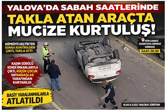Kazanın ardından araçta bulunan kadın sürücü kendi imkânlarıyla araçtan çıkmayı başarırken, arka koltukta bulunan küçük çocuk çevredeki vatandaşların hızlı müdahalesiyle kurtarıldı. Olay anında yoldan geçenlerin yardıma koştuğu görüldü.