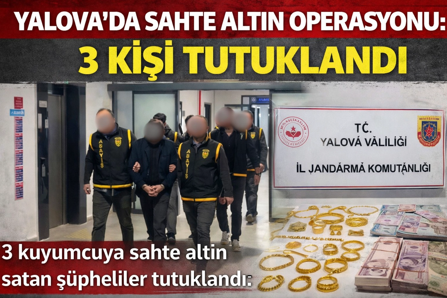 Yalova’da 3 farklı kuyumcuyu dolandıran sahte altın şebekesine operasyon düzenlendi. Gözaltına alınan 3 şüpheli tutuklanarak cezaevine gönderildi.