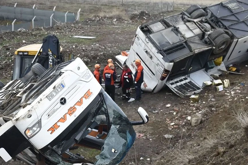 Yalova dan Erzincan’a gitmekte olan “Başak” firmasına ait yolcu otobüsü Sivas'ın İmranlı ilçesinde trafik kazası yaptı. Kazada 2 vatandaşımız hayatını kaybederken 25 kişi yaralanarak hastanelere kaldırıldı.