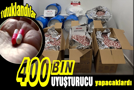 Sinir sistemlerindeki ağrıları ve epilepsi hastalarında nöbetleri önlemek ve kontrol altına almak için kullanılan pregabalin maddesini 400 bin kapsüle doldurmak isteyen üç uyuşturucu satıcısı ifadeleri alındıktan sonra çıkarıldıkları mahkemece tutuklanarak ceza evine gönderildiler.