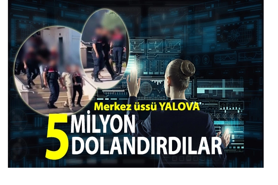 Yalova İl Jandarma Komutanlığı Siber Suçlarla Mücadele Şube Müdürlüğünce, ”Nitelikli Dolandırıcılık Suçunu Bilişim Sistemleri Kullanarak İşlemek” suçu kapsamında 5 Milyon TL suç geliri elde ettiği tespit edilen yedi şüpheliye yönelik İstanbul, Sakarya, Balıkesir ve Uşak illerinde eş zamanlı olarak operasyon yapıldı.7 kişi gözaltına alındı.