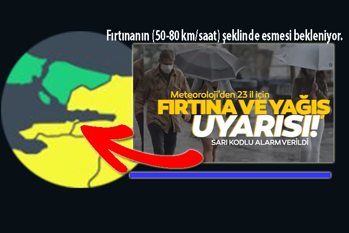 “ Meteoroloji Genel Müdürlüğü'nün değerlendirmelerine göre; bugün öğle saatlerinden itibaren rüzgârın, bölgemizde (İstanbul, Kocaeli, Sakarya, Yalova, Tekirdağ, Edirne ve Kırklareli) Güney yönlerden kuvvetli ve fırtına (50-80 km/saat) şeklinde esmesi bekleniyor.